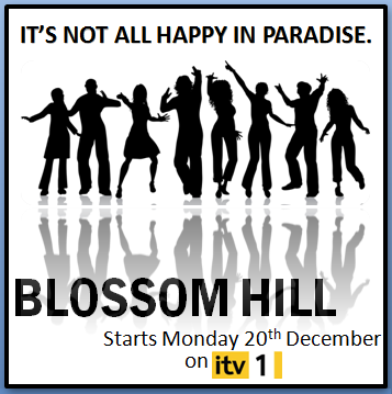 The first poster plan is very simple, I wanted everything to be black and white apart from the picture so it would stand out more as the picture is the main focus. My tag line "It's not all happy in paradise" stands out very well as it is big and bold at the top of the poster. The text is also very clear for the name of our soap "Blossom Hill", and I have also included when it starts and what channel so all the information needed is on there. I like the idea as it's set out very clear but then I do think it is a bit boring.